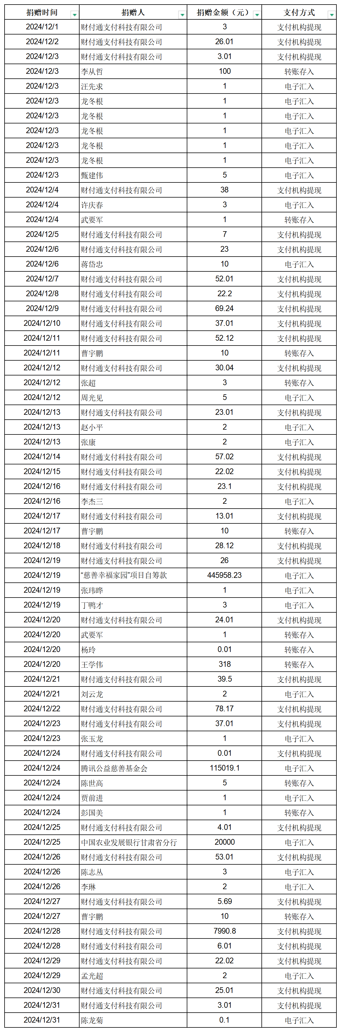 2024年张掖市慈善协会捐赠光荣榜(九)(银行转账收入)