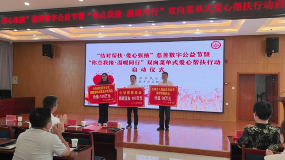 7月,举办“结对帮扶·爱心张掖”慈善数字公益节暨社会组织“你点我接·温暖同行”双向菜单式爱心帮扶行动,创新“群众点单、慈善接单”帮扶模式,实现供需精准对接。启动仪式上,中华慈善总会捐赠现金100万元,中乔体育股份公司捐赠价值100万元的运动服及体育用品,安徽济人药业股份公司捐赠价值50万元的常备药品,为帮扶行动注入强劲动力。